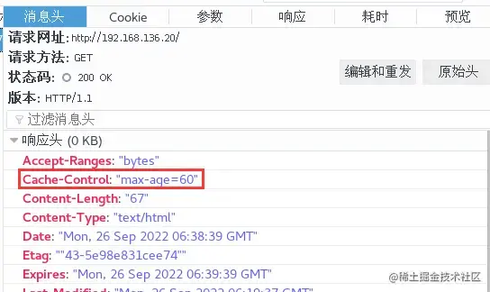 浏览器访问 http://192.168.136.20 ,双击200消息查看 Expires 项