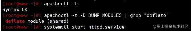 apachectl -t -D DUMP_MODULES | grep "deflate" #检查 mod_deflate 模块是否已安装