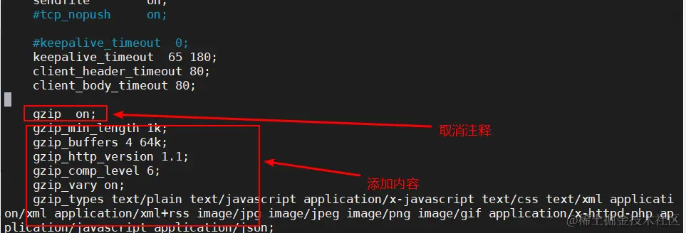 gzip_types text/plain text/javascript application/x-javascript text/css text/xml application/xml application/xml+rss image/jpg image/jpeg image/png image/gif application/x-httpd-php application/javascript application/json; #压缩类型,表示哪些网页文档启用压缩功能