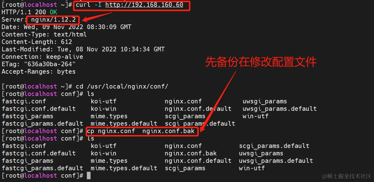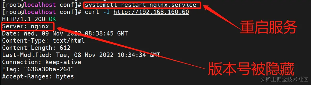 也可以在 CentOS 中使用命令 curl -I http://192.168.160.60显示响应报文首部信息。