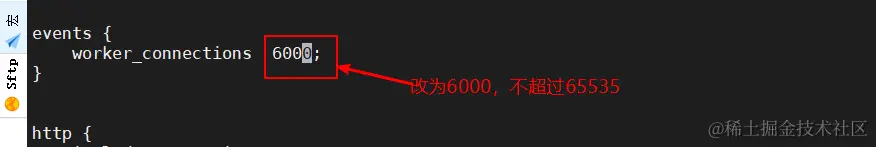 worker_connections 6000; #修改每个进程处理的最大连接数
