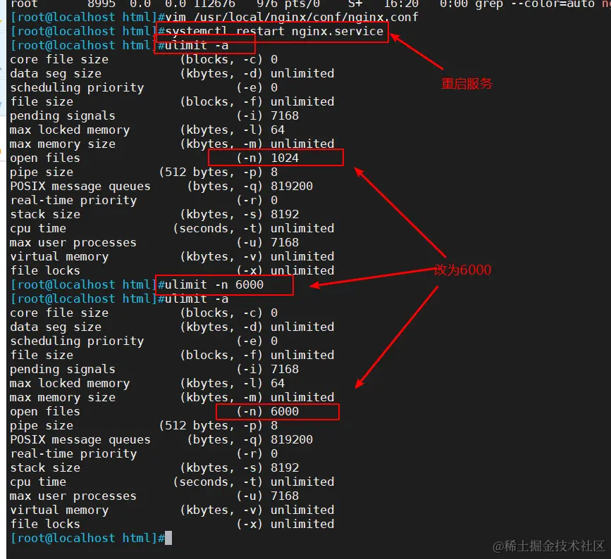 #如提高每个进程的连接数还需执行"ulimit -n 65535"(65535最大值)命令临时修改本地每个进程可以同时打开的最大文件数。