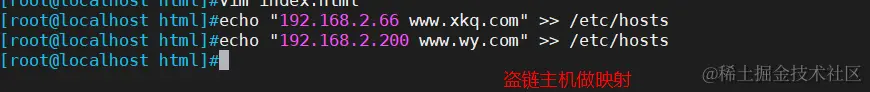 echo "192.168.2.200 www.wy.com" >> /etc/hosts