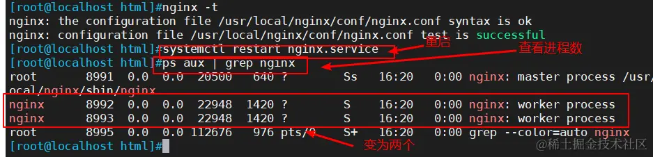 ps aux | grep nginx #查看nginx主进程中包含几个子进程