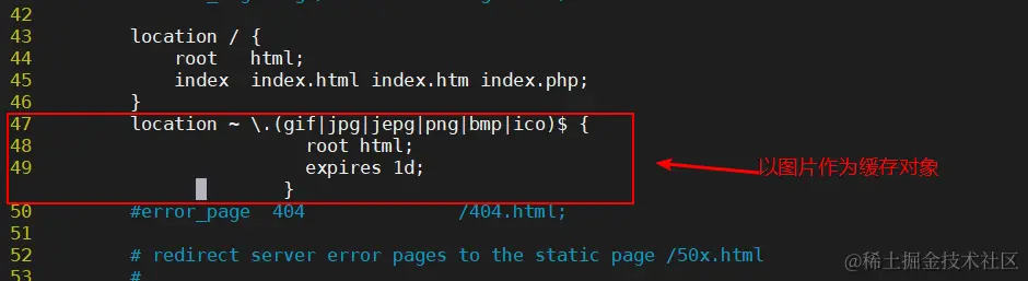location ~ .(gif|jpg|jepg|png|bmp|ico)$ { #加入新的 location,以图片作为缓存对象