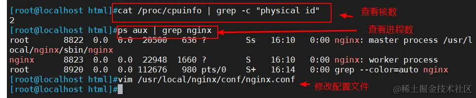 worker processes 2; #修改工作进程数量为核数相同或者2倍
