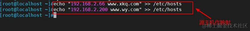 echo "192.168.2.66 www.xkq.com" >> /etc/hosts