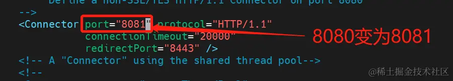 5、修改 tomcat2 中的 server.xml 文件,要求各 tomcat 实例配置不能有重复的端口号