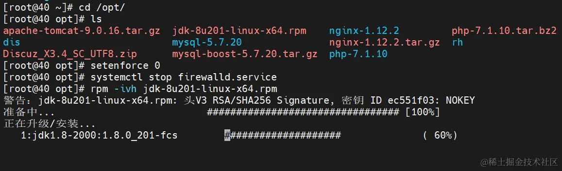 1、关闭防火墙,将安装 Tomcat 所需软件包传到/opt目录下