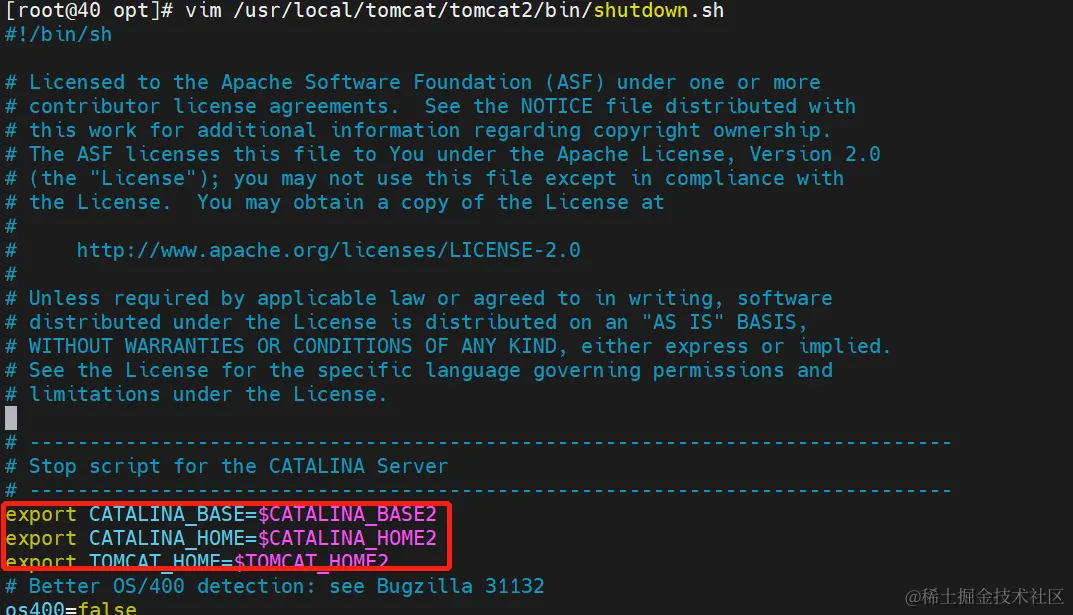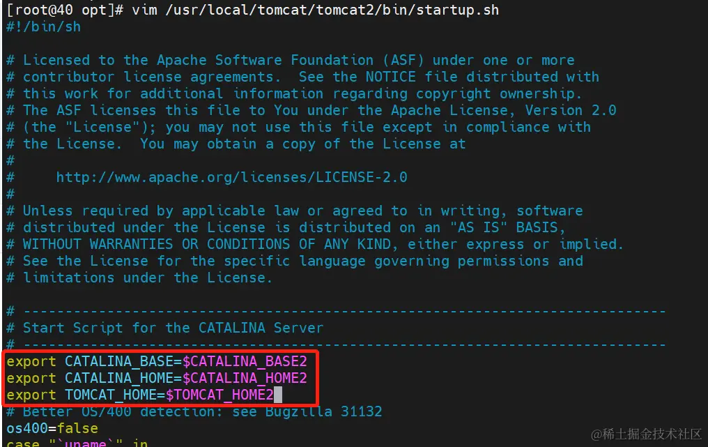 vim /usr/local/tomcat/tomcat2/bin/startup.sh