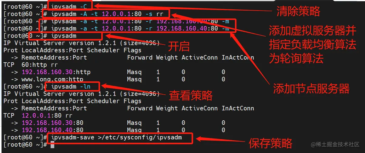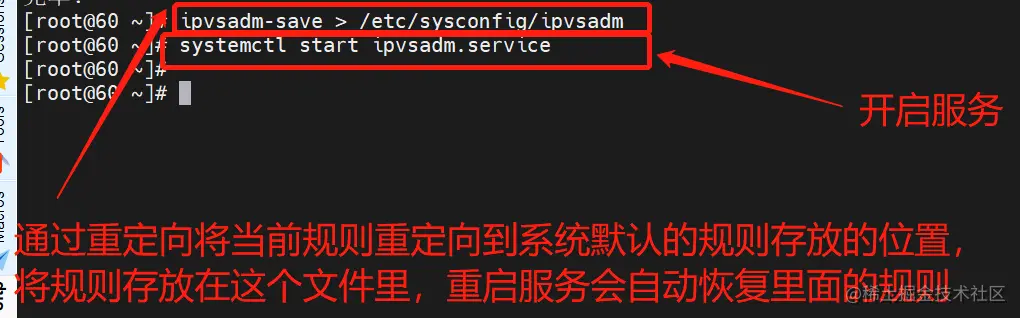 ipvsadm-save > /etc/sysconfig/ipvsadm #保存策略