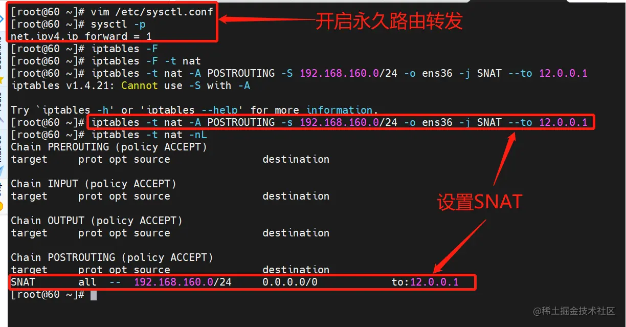 iptables -t nat -A POSTROUTING -s 192.168.160.0/24 -o ens37 -j SNAT --to-source 12.0.0.1