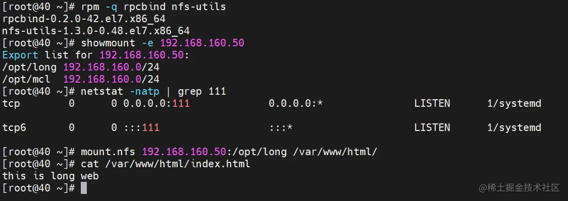 2.1 查看是否安装rpcbind、nfs-util并设置共享目录