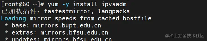 ipvsadm是在负载调度器上使用的LVS群集管理工具,通过调用ip_vs模块来添加、删除服务器节点 ,以 及查看群集的运行状态。在CentOS7系统中,需要手动安装ipvsadm.x86_64 0:1.27-7.el7 软件包。