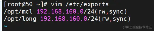 /opt/mcl 192.168.160.0/24(rw,sync)