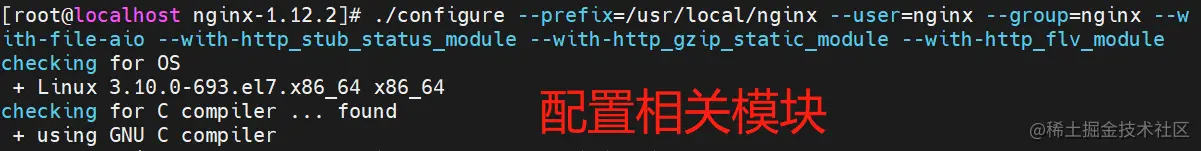 ./configure --prefix=/usr/local/nginx --user=nginx --group=nginx --with-file-aio --with-http_stub_status_module --with-http_gzip_static_module --with-http_flv_module