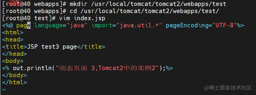 vim /usr/local/tomcat/tomcat2/webapps/test/index.jsp
