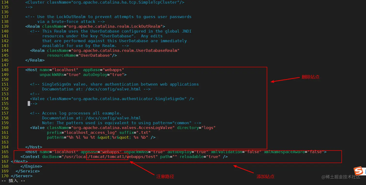 vim /usr/local/tomcat/tomcat1/conf/server.xml