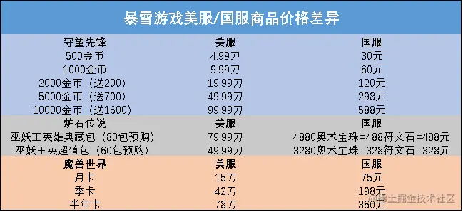 虽然,当前暴雪国内运营的守望先锋、炉石传说、魔兽世界三款游戏,国内的商品价格相比全球价格低20%。但是,从2021年国内人均344的消费水平来看,暴雪这三款游戏的收费已经处于业内较高的水平。