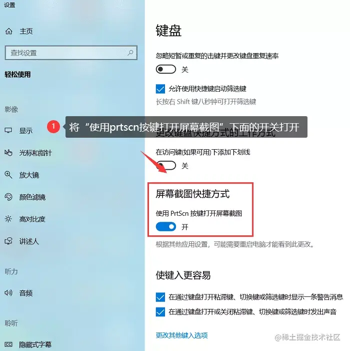具体操作: 在电脑桌面左下角找到开始菜单,单击齿轮(设置图标)进入控制窗口。在搜索框里面搜索【截图】,单击【使用print screen键启动屏幕截图】。然后在窗口右侧找到【屏幕截图快捷方式】,在它的下方的打开截图的开关。最后,按下【prtscn】键来自定义截图。