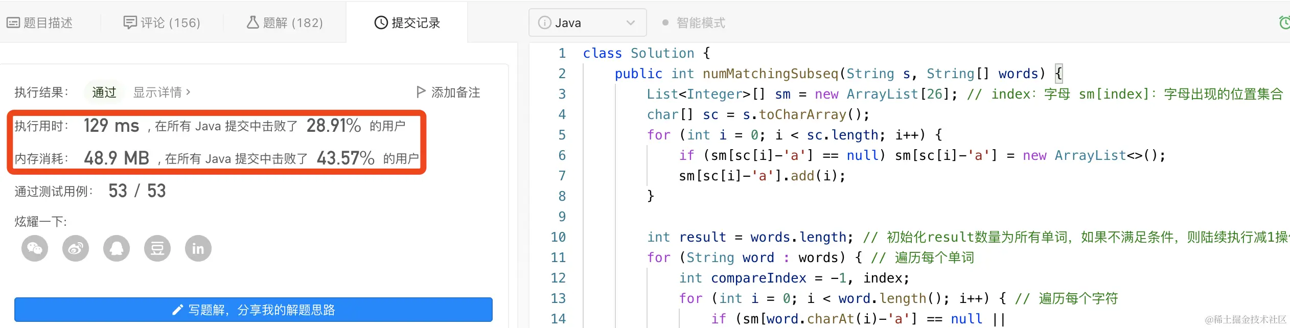 792. 匹配子序列的单词数(难度:中等)