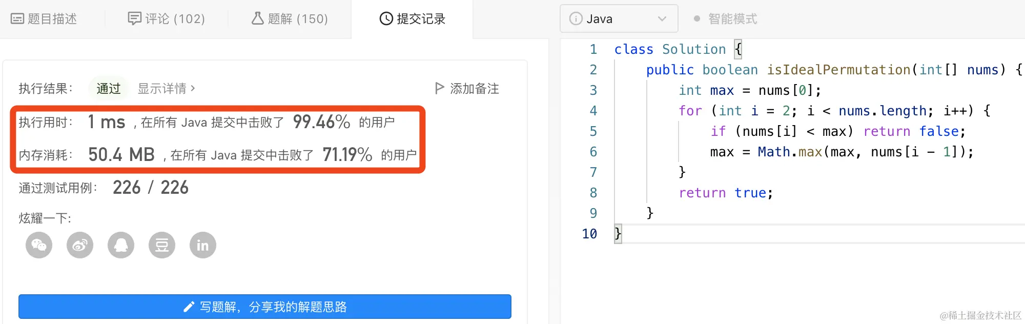 当数组 nums 中 全局倒置 的数量等于 局部倒置 的数量时,返回 true ;否则,返回 false 。