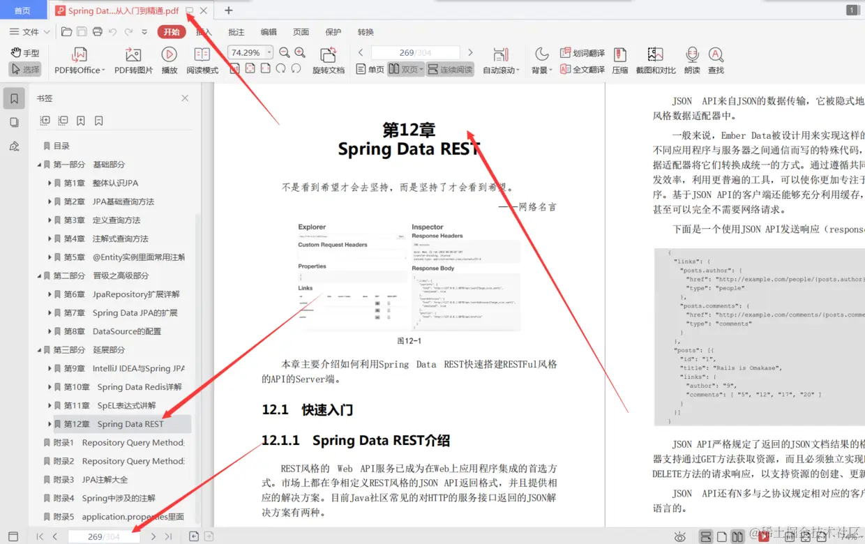 第12章Spring Data REST,本章主要介绍如何利用Spring Data REST快速搭建RESTFul风格的API的Server端。REST风格的 Web API服务已成为在Web上应用程序集成的首选方式。市场上都在争相定义REST风格的JSON API返回格式,并且提供相应的解决方案。