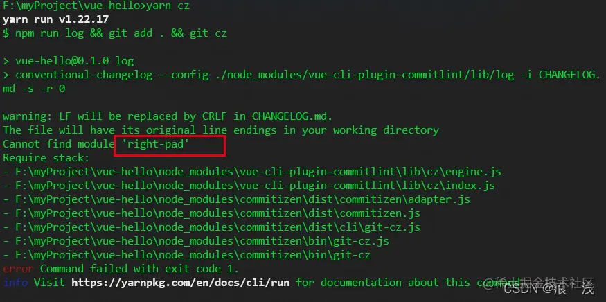 通过script脚本提交,执行yarn cz,可能会出现如下报错: