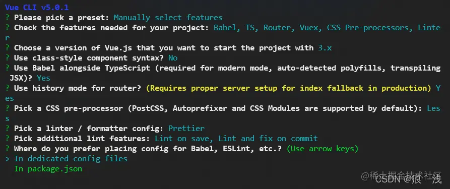 使用 vue-cli5.0 + vue3 + ts + less + prettier + eslint + commitlint + stylelint 构建项目