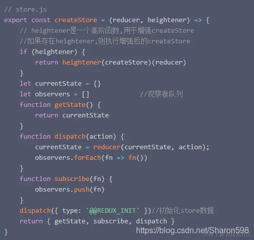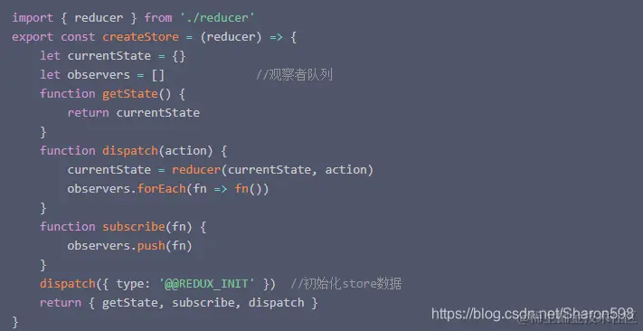 既然要存取状态,肯定要有setter/getter,当状态发生时,需要广播,通知组件状态发生变化,所以需要redux的getState、dispatch、subscribe