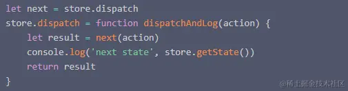 先直接返回新的dispatch, 即中间件logger