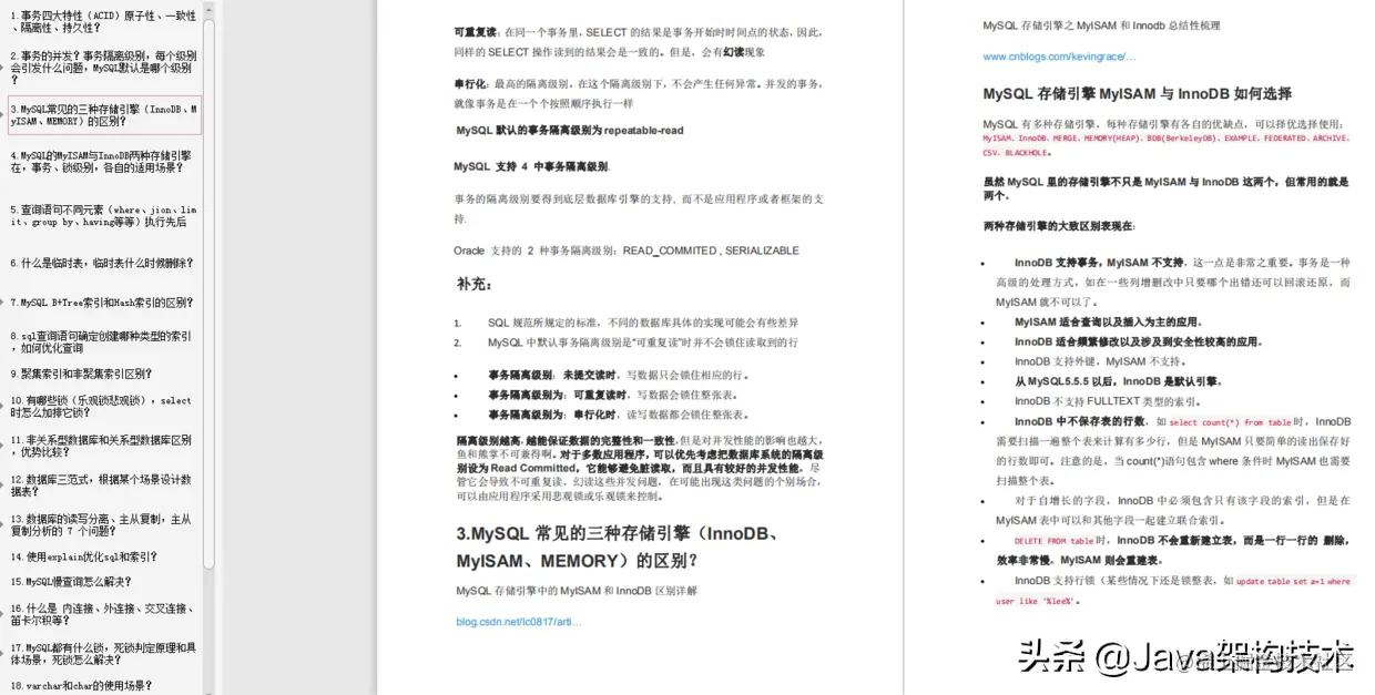 - MySQL 常见的三种存储引擎(InnoDB、 MyISAM、MEMORY)的区别?