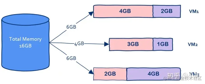 在这台机器上开启三个虚拟机,每个虚拟机上部署一个应用,其中VM1占用2G内存,VM2占用1G内存,VM3占用了4G内存。