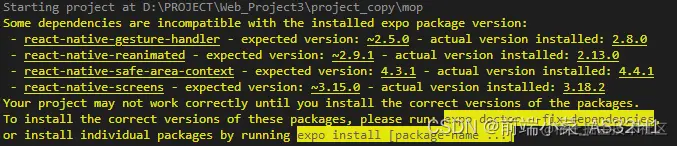 如果有这种黄色警告内容的话,关于期望版本的,只要是expo的能升级尽量升级