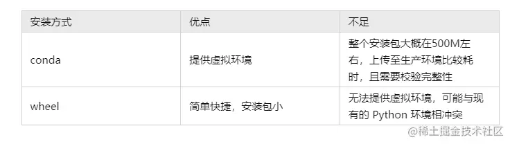 总体而言,wheel 包安装比较简单快捷,而 conda 安装相对复杂,但是可以构建一个隔离环境。