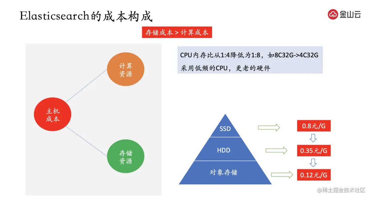 ES 的主要的成本是主机成本,主机成本又分为计算资源和存储资源。
