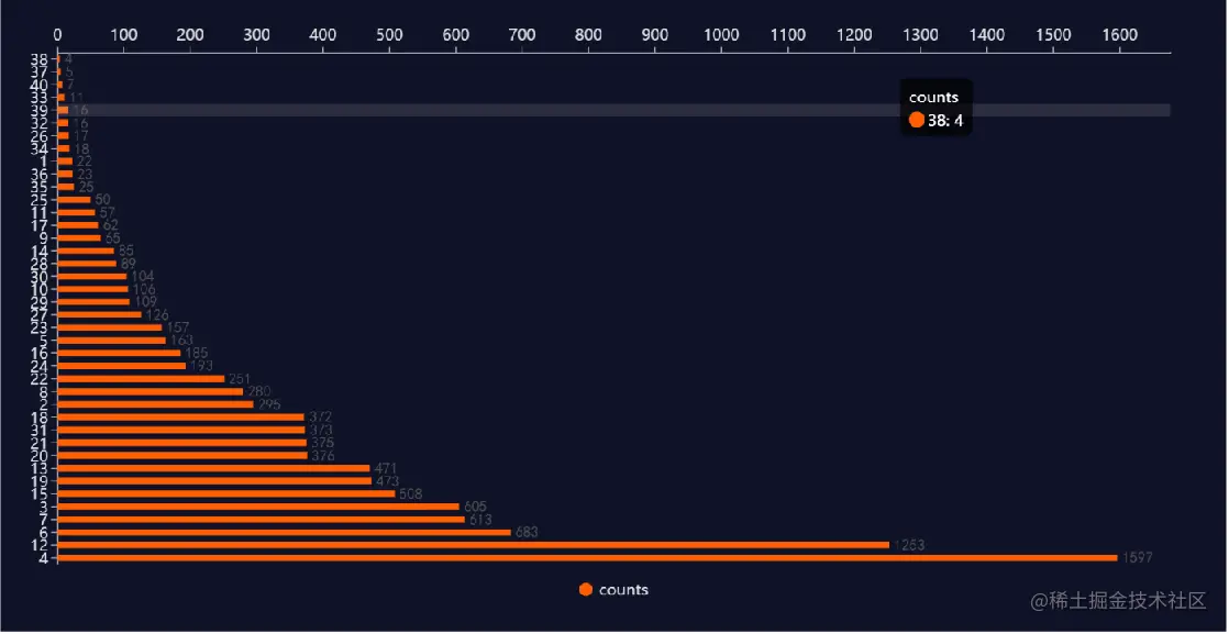 - 在训练集中,job_id的数量分布如下,可以看出岗位4和12数量最多,38和37岗位比较少