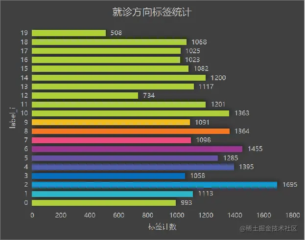 就诊方向标签中,其中内科、小儿保健、咽喉疾病数量比较多,骨科、甲状腺疾病问诊人数较少