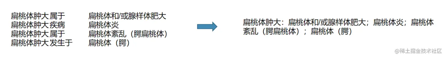 (2) 对于spo.txt文件,根据第一列疾病名称构建聚合文本,用于文本语义增强,比如