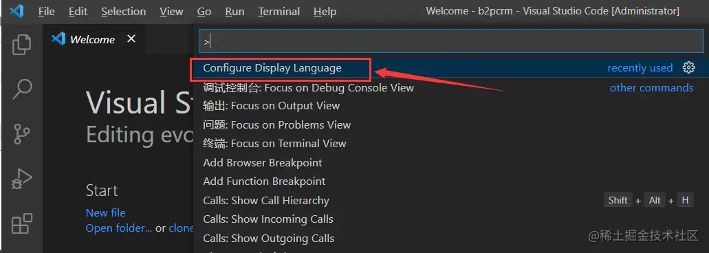 按Ctrl + Shift + P 快捷键,打开插件的搜索框,点击Configure Display Language,然后按回车键。