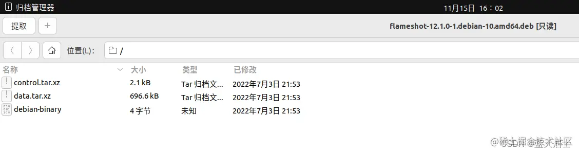 结合flameshot包我们实际来看一下。进入到flameshot-12.1.0-1.debian-10.amd64.deb的放置路径: