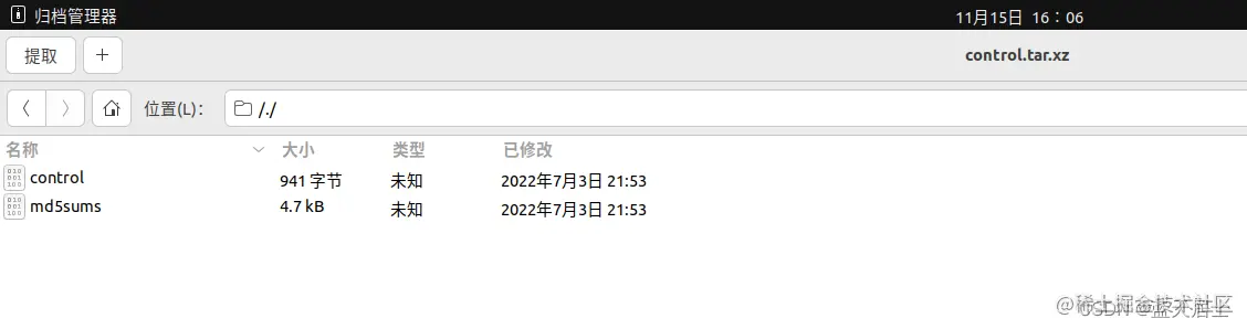 如果要查看包的控制信息,把control.tar.xz 解压:tar -xvf control.tar.xz。
