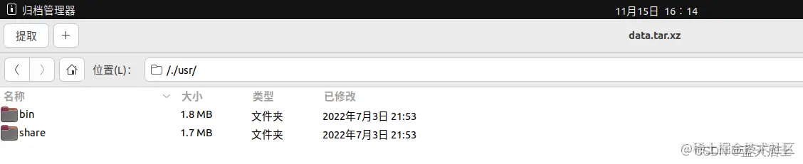 data.tar.xz就是包格式中提到的数据包,包含实际安装的程序数据。继续对于其下内容进行查看。如下图所示: