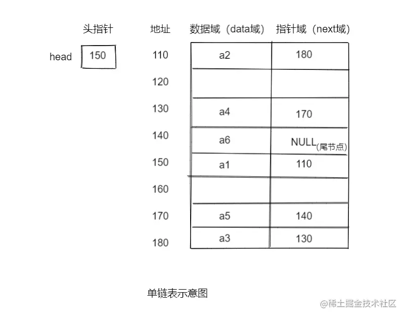 每个结点包括两个部分:一个是存储数据元素的数据域(data域),另一个是存储下一个结点地址的指针域(next域)。