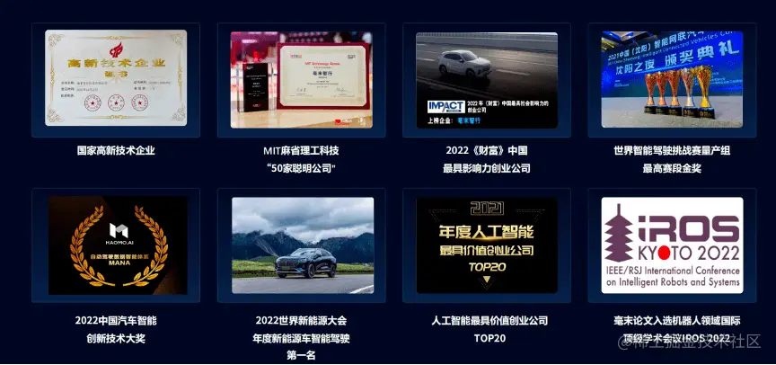 不断地“修炼内功”,让毫末在2022年跑赢全场。今年毫末获得了“国家高新技术企业”资质认证,而首创的数据智能体系MANA荣获2022中国汽车智能创新技术大奖。此外,毫末还入围了多项榜单,其中包括:《麻省理工科技评论》“50家聪明公司”榜单、毕马威《中国领先汽车科技企业50》自动驾驶领域新锐企业榜、2022《财富》中国最具社会影响力创业公司名单等。