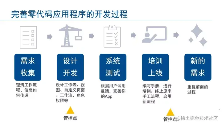 大量的零代码开发者产出大量应用成果。我们在开发了100多个应用之后,形成了一套标准的开发流程。
