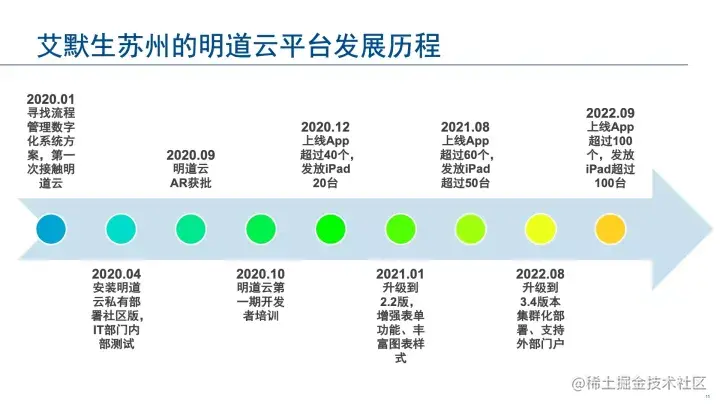 我们正式使用明道云已经两年,到今年我们做了一次升级,把它升级为集群版。到目前为止,苏州工厂内部已经有超过100个应用,我们也把明道云用在更加深度、有价值的场景里,包括面向内部合作伙伴和上下游供应商开放数据共享入口。通过API,让他们给我们提供数据,实现产业链上下游信息同步。