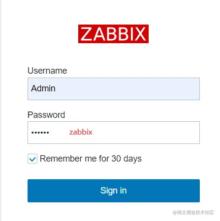 安装完成后,默认的登录账号和密码为:Admin/zabbix