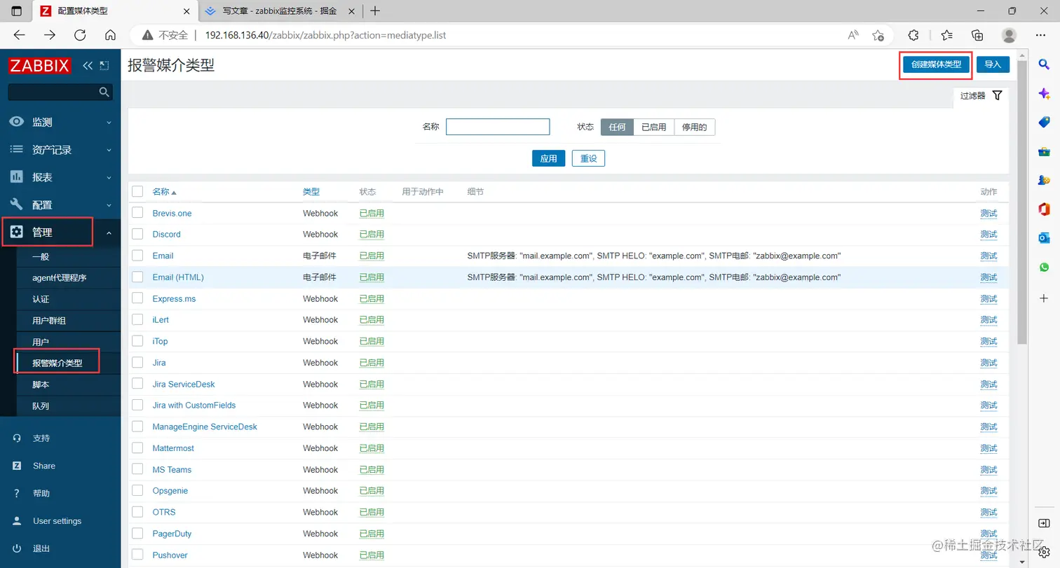 点击左边菜单栏【管理】中的【agent代理程序】,点击【创建代理】