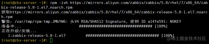 rpm -ivh https://mirrors.aliyun.com/zabbix/zabbix/5.0/rhel/7/x86_64/zabbix-release-5.0-1.el7.noarch.rpm